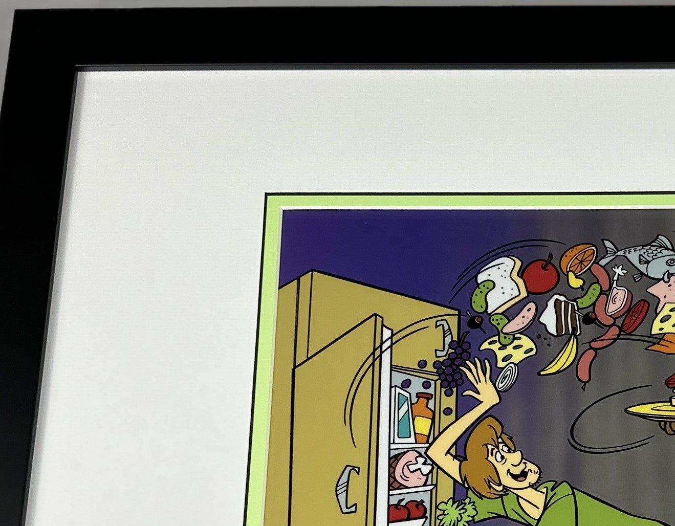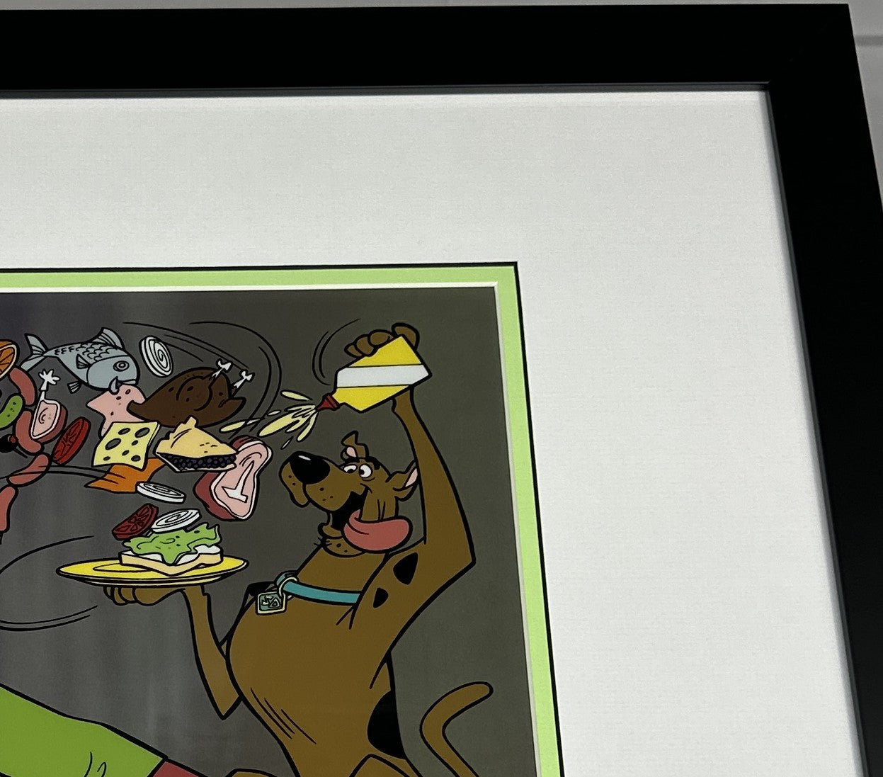 This limited edition "Scooby's Hero" Sericel from Hanna Barbera is a timeless piece featuring Scooby and Shaggy. Professionally framed and measuring 12"x10", it is made with museum-quality materials. A must-have for any fan or collector.